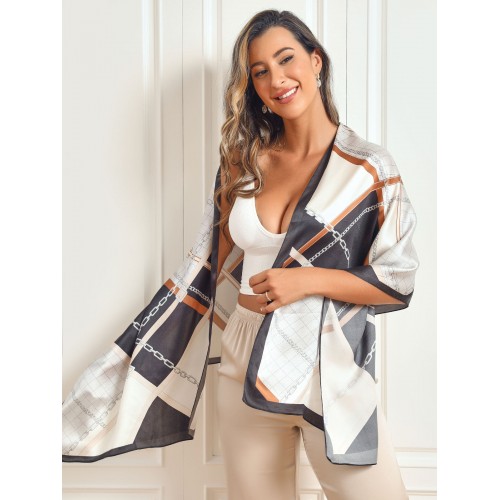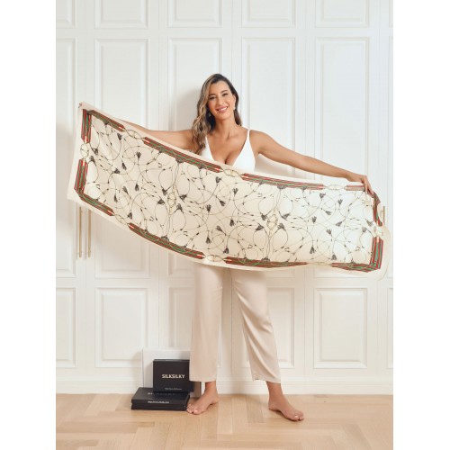 Made from premium mulberry silk. this scarf offers a beautifully smooth texture that drapes effortlessly. Its refined design brings a sophisticated touch suitable for both everyday wear and formal occasions. Lightweight and fluid. it can be styled in multiple ways—around the neck. as a headscarf. tied to a bag. or worn as an accessory accent—making it a truly versatile wardrobe essential that enhances any look with understated elegance.