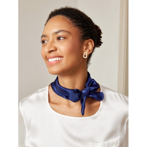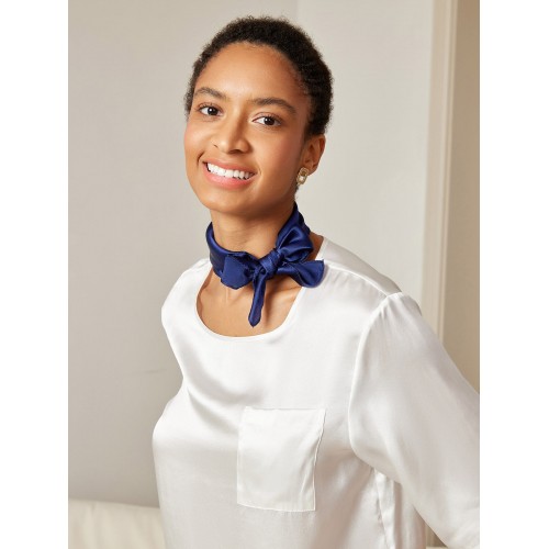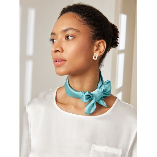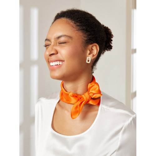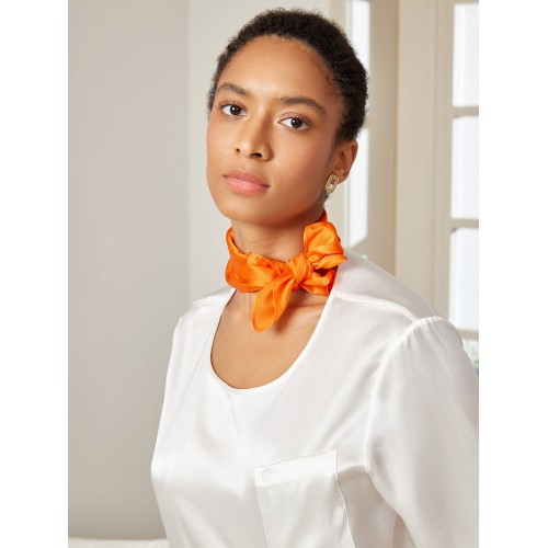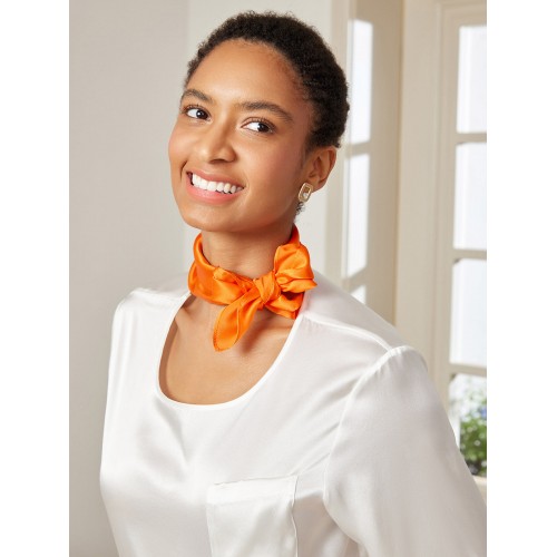 Crafted from the finest mulberry silk. this petite square scarf radiates a brilliant. glossy silk sheen that highlights its premium quality. Measuring 53x53cm. it is the perfect dimension to be tied as an elegant neckerchief. a playful hair accessory. or a decorative wrist wrap. Its classic solid-tone design offers understated luxury. making it a versatile styling piece that effortlessly polishes any look. from lounging at home to a sophisticated day out.