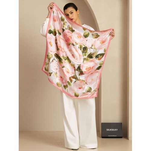 Product Code: pure-silk-pink-floral-print-square-scarf-size-90x90cm