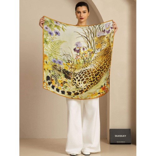 Pure Silk Leopard & Floral Scarf - Size 90x90cm